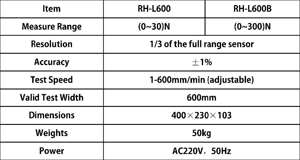 Tensile Tester RH-L600 Electronic stripping tester ISO1924/2 2. Long service life